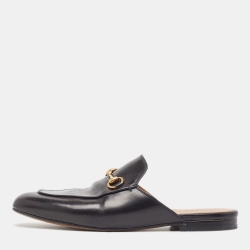 Gucci Black Leather Horsebit Block Heel Slide Sandals Size 42