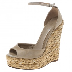 Gucci Silver Patent Leather Platform Ankle Strap Sandals Size 40