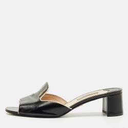 Prada Black Patent Leather Logo Slide Sandals Size 39