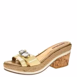 Prada Sport Red Patent Leather Slingback Wedges Size 38