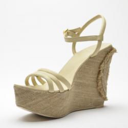 Tory Burch Yellow Patent Leather Dahlia Cork Wedges Size 39.5