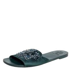 Tory Burch Beige Satin Embellished Logan Sandals Size 36