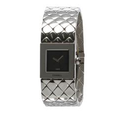 Chanel Black Stainless Steel Quilted Mademoiselle Women's Wristwatch 19 MM