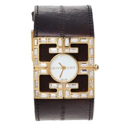 Givenchy Mother of Pearl Stainless Steel Leather Diamonds GV.5214M Women's Wristwatch 38 mm