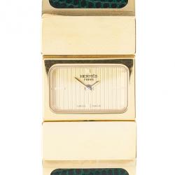 Hermes Gold Stainless Steel Green Kelly Women's Wristwatch 20MM