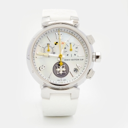 Louis Vuitton Mother of Pearl Stainless Steel Rubber Tambour Lovely Cup Q11BA Women's Wristwatch 39 mm
