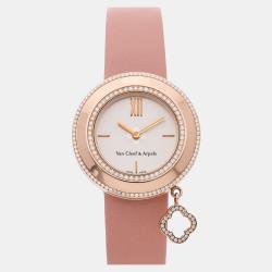 Van Cleef & Arpels White 18k Rose Gold Leather Charms HH67618 Women's Wristwatch 25 mm