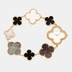 Van Cleef & Arpels Mother Of Pearl Onyx 18K Yellow Gold Small Model Alhambra VCARO40P00 Women's Wristwatch 26 mm