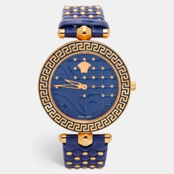Versace Blue Rose Gold Plated Stainless Steel Leather Vanitas VK7 Women's Wristwatch 40 mm