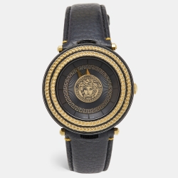 Versace Black Gold Plated Stainless Steel Leather Destiny Spirit 86Q Women's Wristwatch 39 mm