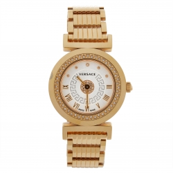 Versace White Yellow Gold Tone Stainless Steel V-Greca 64Q Women's Wristwatch 36 mm