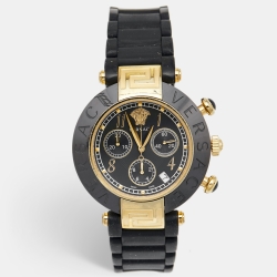 Versace Black Ceramic Gold Plated Steel Rubber Chronograph Reve 95C Women's Wristwatch 40 mm