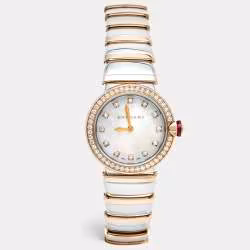 Bvlgari Lvcea 102475 White Mother of Pearl Diamond 18K Rose Gold Stainless Steel Women's Wristwatch 28 mm