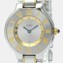 Cartier Silver Yellow Gold Plated Stainless Steel Must 21 de Cartier W10073R6 Women's Wristwatch 28 mm