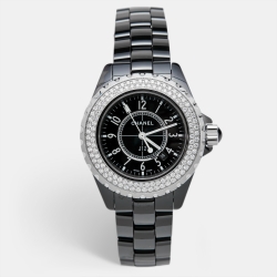 Chanel Black Ceramic Stainless Steel Diamond J12 H0949 Women's Wristwatch 33 mm