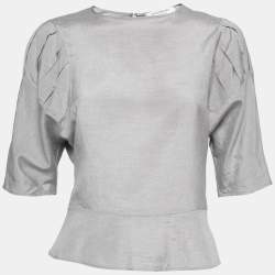 Yves Saint Laurent Tan Brown Cotton Ruffled Zip-Up Jacket L