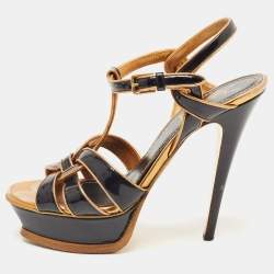 Yves Saint Laurent Navy Blue Patent Leather Tribute Platform Sandals Size 38.5