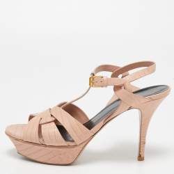 Yves Saint Laurent Pink Suede Tribute Platform Sandals Size 39.5