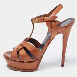 Yves Saint Laurent Orange Eel Leather Slingback Platform Sandals Size 37