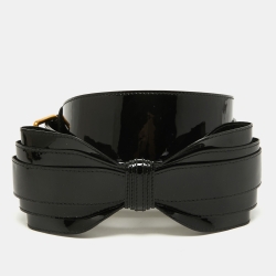 Yves Saint Laurent Black Patent Leather Bow Waist Belt 75CM