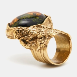 Yves Saint Laurent Arty Glass Gold Tone Ring Size 53