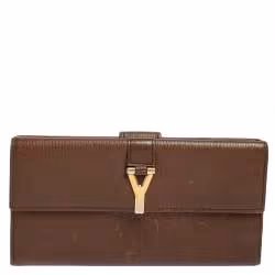 Yves Saint Laurent Brown Leather Y Ligne Flap Continental Wallet