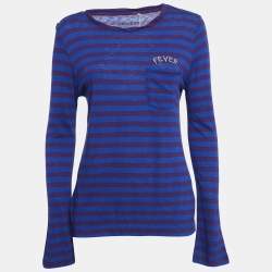 Zadig & Voltaire Deluxe Navy Blue Striped Neoprene Zip Up Hoodie L