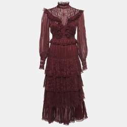 Zimmermann Burgundy Lace Ruffled Silk Espionage Panel Dress S